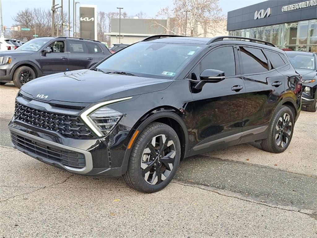 Certified. Remainder of Factory Warranty, **ONE OWNER**, Bluetooth Handsfree, Rear Backup Camera, AWD, Apple CarPlay & Android Auto, Auto High-beam Headlights, Delay-off headlights, Electronic Stability Control, Fully automatic headlights, Heated Front Bucket Seats, Heated front seats, LED Interior Lighting, Metal Front Skid Plate, Mud Guards, Navigation System, Panic alarm, Panoramic Sunroof, Power door mirrors, Power driver seat, Premium Leatherette Seat Trim, Radio: AM/FM/HD Audio System, Sage Green Interior Color Package, Security system, Smart Power Liftgate, Telescoping steering wheel, Wheels: 19" Gloss Black Alloy, X-Line Premium Package. Ebony Black 2024 Kia Sportage X-Line AWD 8-Speed Automatic I4