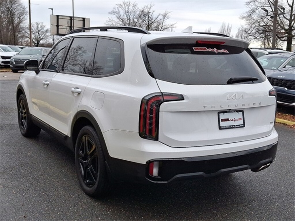 Certified. Remainder of Factory Warranty, Sunroof Moonroof, **ONE OWNER**, Bluetooth Handsfree, Rear Backup Camera, Blind Spot Monitor, CLEAN CARFAX, 3rd row seats: split-bench, 6 Speakers, Apple CarPlay & Android Auto, Auto High-beam Headlights, Auto-dimming Rear-View mirror, Delay-off headlights, Exterior Parking Camera Rear, Fully automatic headlights, Heated & Ventilated Front Bucket Seats, Heated steering wheel, Leather Seat Trim, Navigation System, Panic alarm, Power driver seat, Power Liftgate, Power moonroof, Power passenger seat, Power steering, Radio: AM/FM Display Audio System, Rear audio controls, Reclining 3rd row seat, Security system, Smart Key w/ Push Button and Remote Start, Steering wheel mounted audio controls, Telescoping steering wheel, Tilt steering wheel, Wheels: 20" x 7.5" Black Finish X-LINE Exclusive. Glacial White Pearl 2024 Kia Telluride EX X-Line AWD 8-Speed Automatic 3.8L V6 DOHC