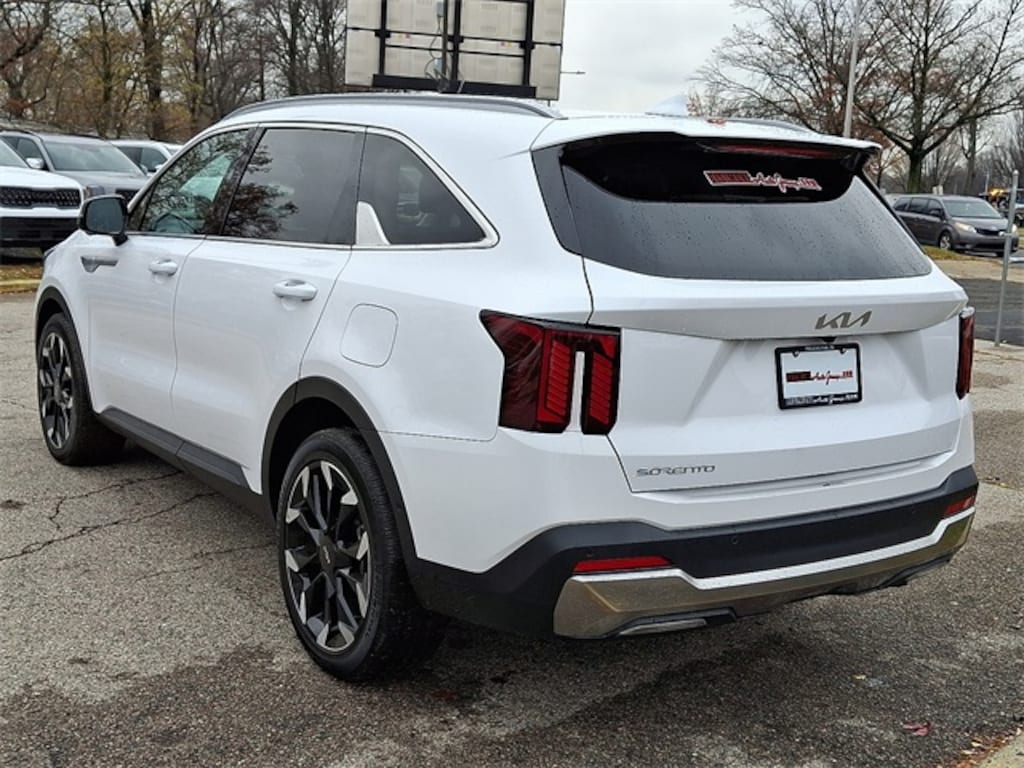 Certified. Remainder of Factory Warranty, Sunroof Moonroof, **ONE OWNER**, Bluetooth Handsfree, Rear Backup Camera, Blind Spot Monitor, CLEAN CARFAX, 3rd row seats: split-bench, Apple CarPlay & Android Auto, Auto High-beam Headlights, Auto-dimming Rear-View mirror, Bumpers: body-color, Delay-off headlights, Electronic Stability Control, Exterior Parking Camera Rear, Front fog lights, Front reading lights, Fully automatic headlights, Heated & Ventilated Front Bucket Seats, Heated door mirrors, Navigation System, Overhead console, Panic alarm, Power driver seat, Power Liftgate, Power moonroof, Power steering, Radio: AM/FM Standard Sound System, Security system, Speed control, Steering wheel mounted audio controls, SynTex Artificial Leather Seat Trim, Telescoping steering wheel, Tilt steering wheel, Ventilated front seats, Wheels: 20" Machine-Finished Gloss Black Alloy. Glacial White Pearl 2025 Kia Sorento SX FWD 8 Speed Dual Clutch 2.5L I4 DGI Turbocharged DOHC 16V LEV3-SULEV30 281hp