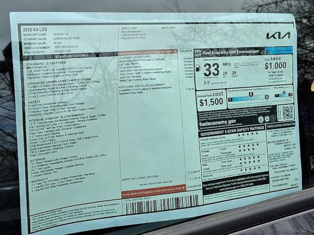 Aurora Black Pearl 2026 Kia K4 LXS FWD CVT 2.0L I4 MPI