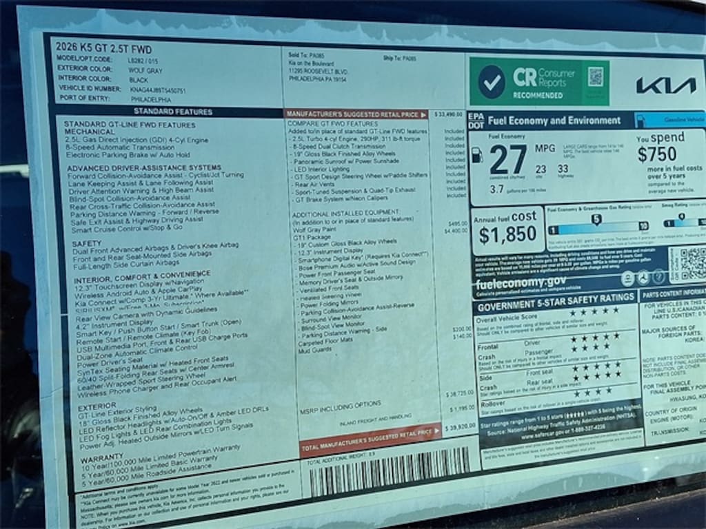 Wolf Gray 2026 Kia K5 GT FWD 8-Speed DCT I4