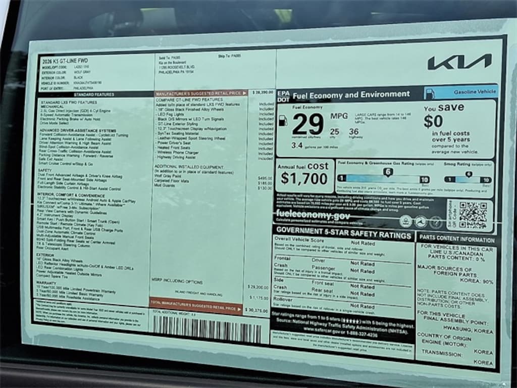 Wolf Gray 2026 Kia K5 GT-Line FWD 8-Speed Automatic I4
